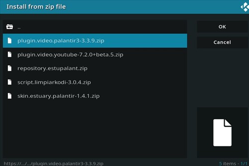 - Click plugin.video.palantir3-3.3.9.zip (If there is a new version install it.)
